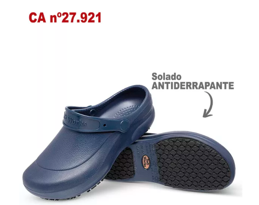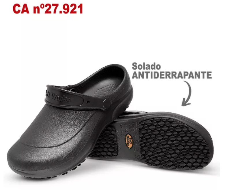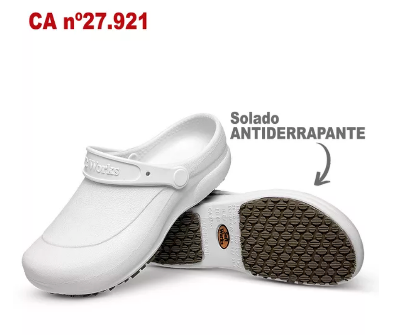 O Babuche Antiderrapante BB60 Soft Works possui C.A. e foi desenvolvido para pessoas que buscam conforto e segurança no trabalho ou no dia a dia