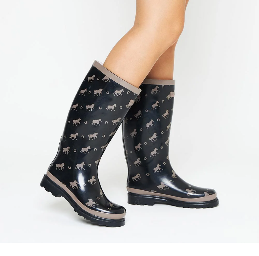 Galocha Kesttou Feminina Preto Matte Cavalos – Bota Feminina Impermeável Slim